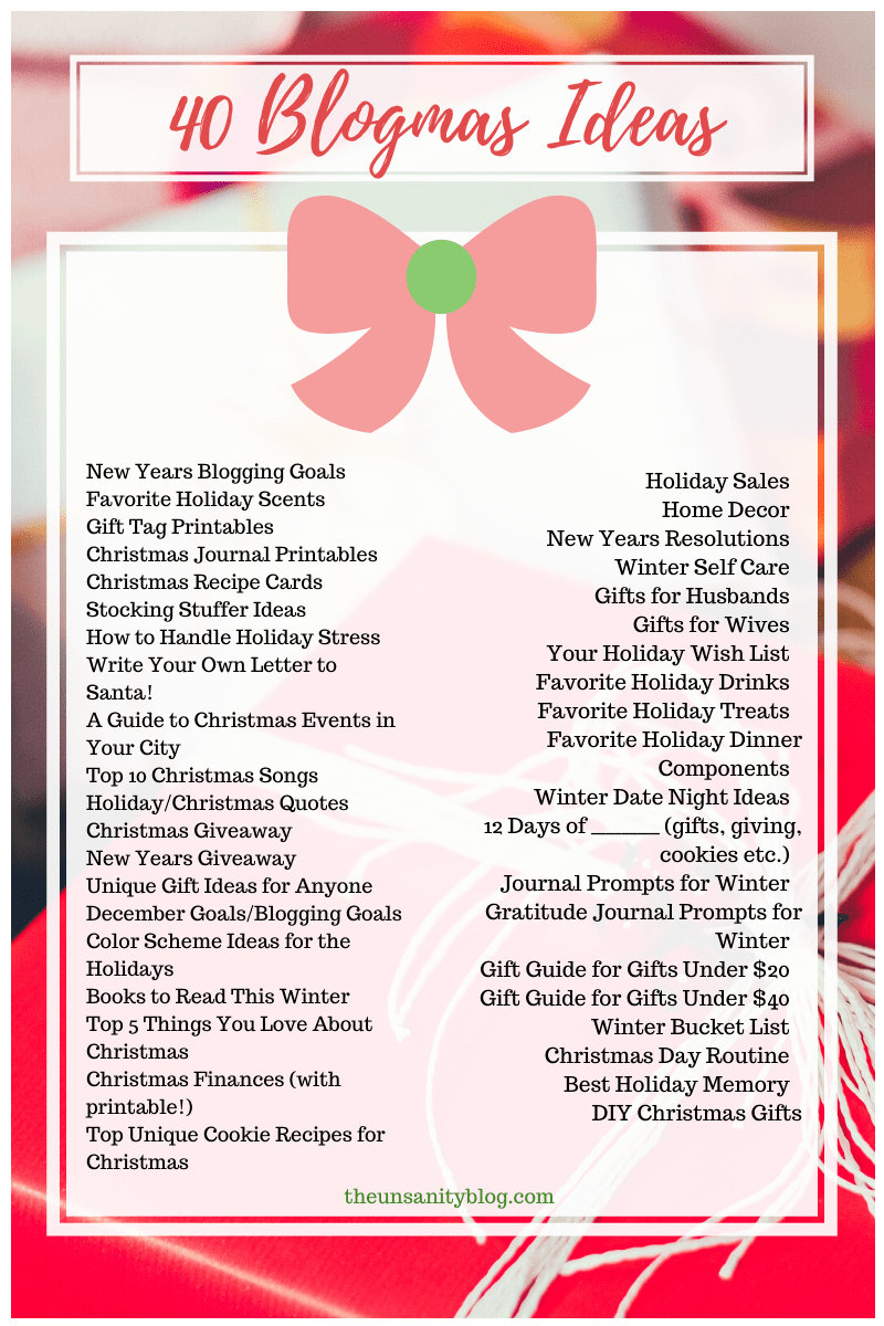 So on that note, I’ve decided to make a list of 40 Blogmas ideas that you may want to write about this holiday season. I’ve done a bit of research, and have curated this list based on what I personally would write about. 12 of these listed will be featured on my blog this season, you’ll just have to wait and see which ones! (These are in no particular order, I just wrote down whatever came to mind at the time.)